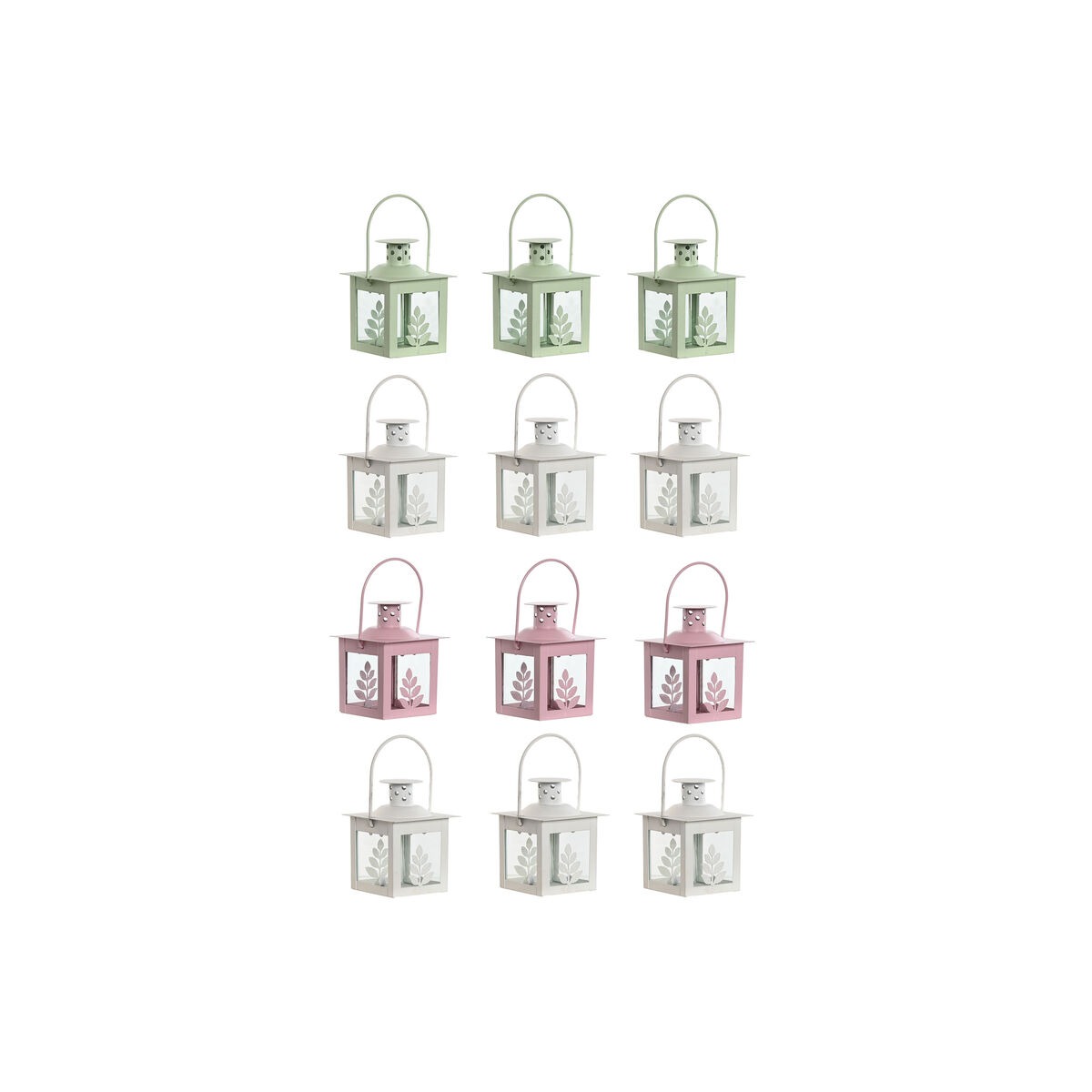 Farolas Home ESPRIT Blanco Verde Rosa Cristal Hierro Shabby Chic 7 x 7 x 10 cm (3 Piezas) (4 Unidades)