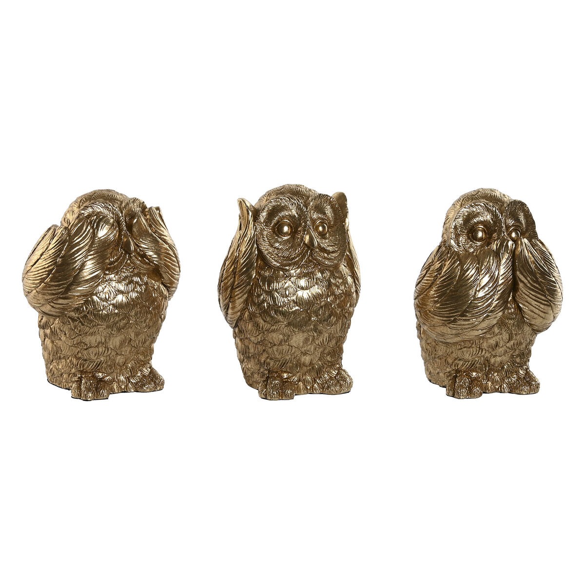 Figura Decorativa Home ESPRIT Dorado Búho 11 x 11 x 15 cm (3 Unidades)