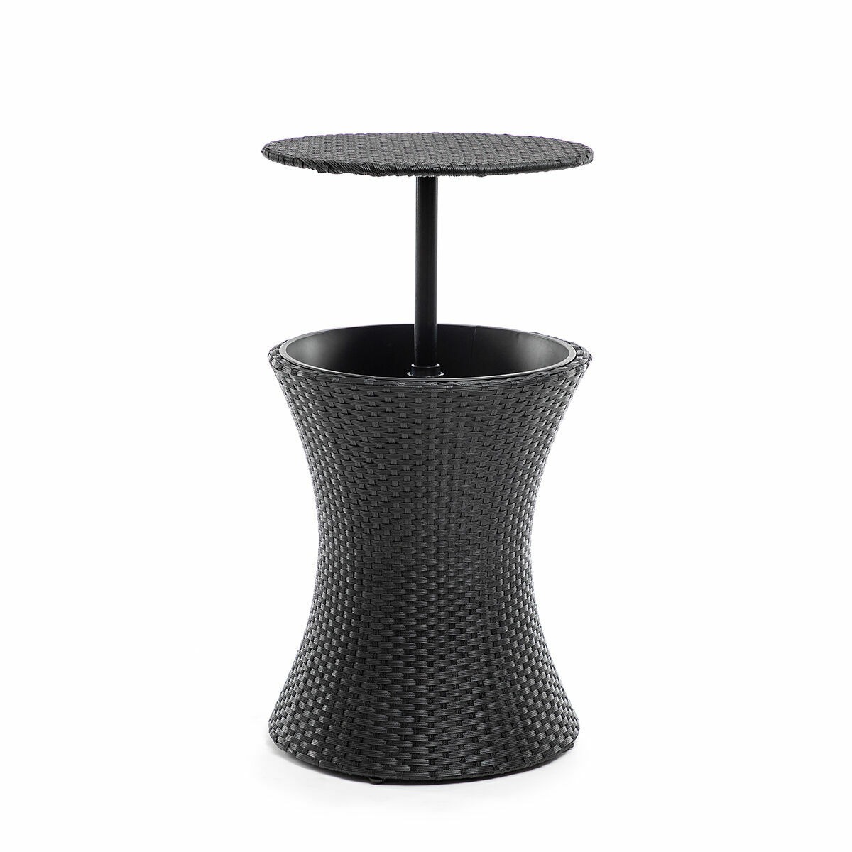 Una mesa de ratán muy versátil por su diseño extensible en altura. Multifunción: mesa de cóctel, mesa de café, mesa auxiliar, etc., en jardines, terrazas, patios, piscinas, etc.